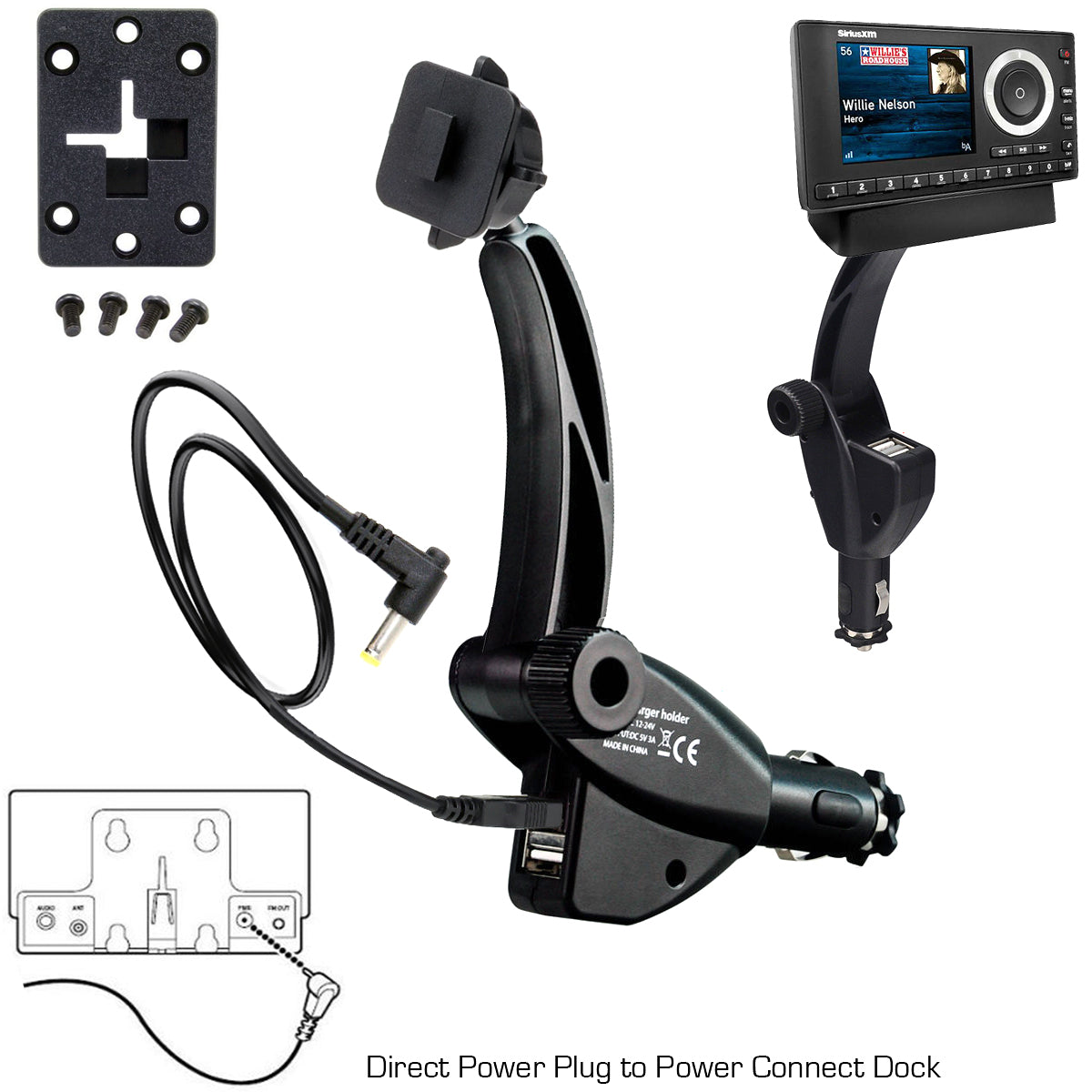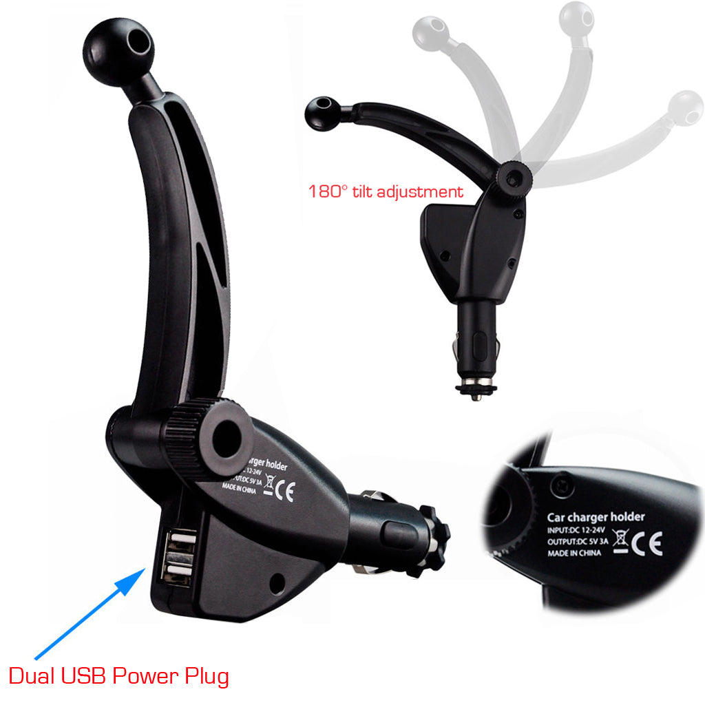 Dual USB Sirius XM Satellite Radio Car Truck Lighter Socket Mount for PowerConnect Dock