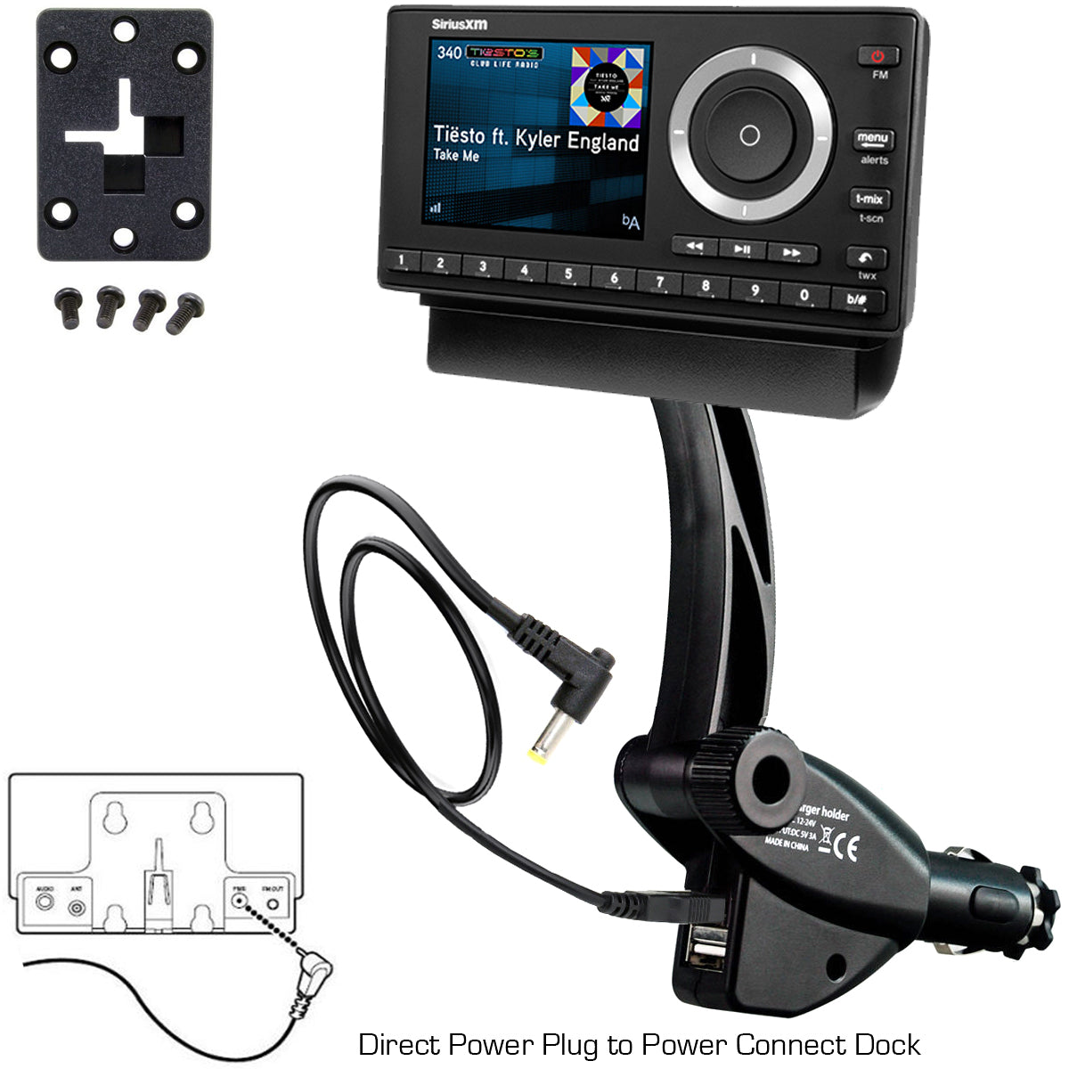 This ChargerCity SiriusXM 2 in 1 Solution vehicle Lighter Socket mounting kit with PowerConnect Vehicle Power charger cable is the all in one solution for your SirusXM enjoyment. This easy to install mount and charger kit will allow you to remove your radio and install it in less than a minute, you can now take your satellite radio and quickly plug it into another vehicle with out fuss of connecting all the cables again. This mount also comes with a charging cable to keep you radio charged and ready where ever it may go. With this kit you won’t miss a second of your favorite radio stations.